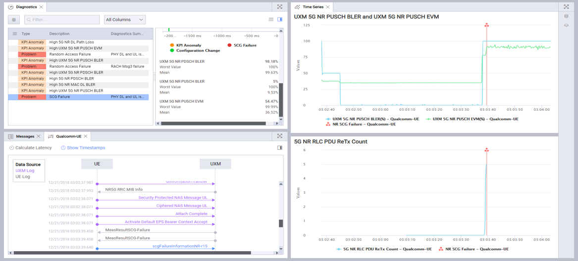 以下是德科技 5G 网络仿真解决方案可激活设备故障诊断功能: